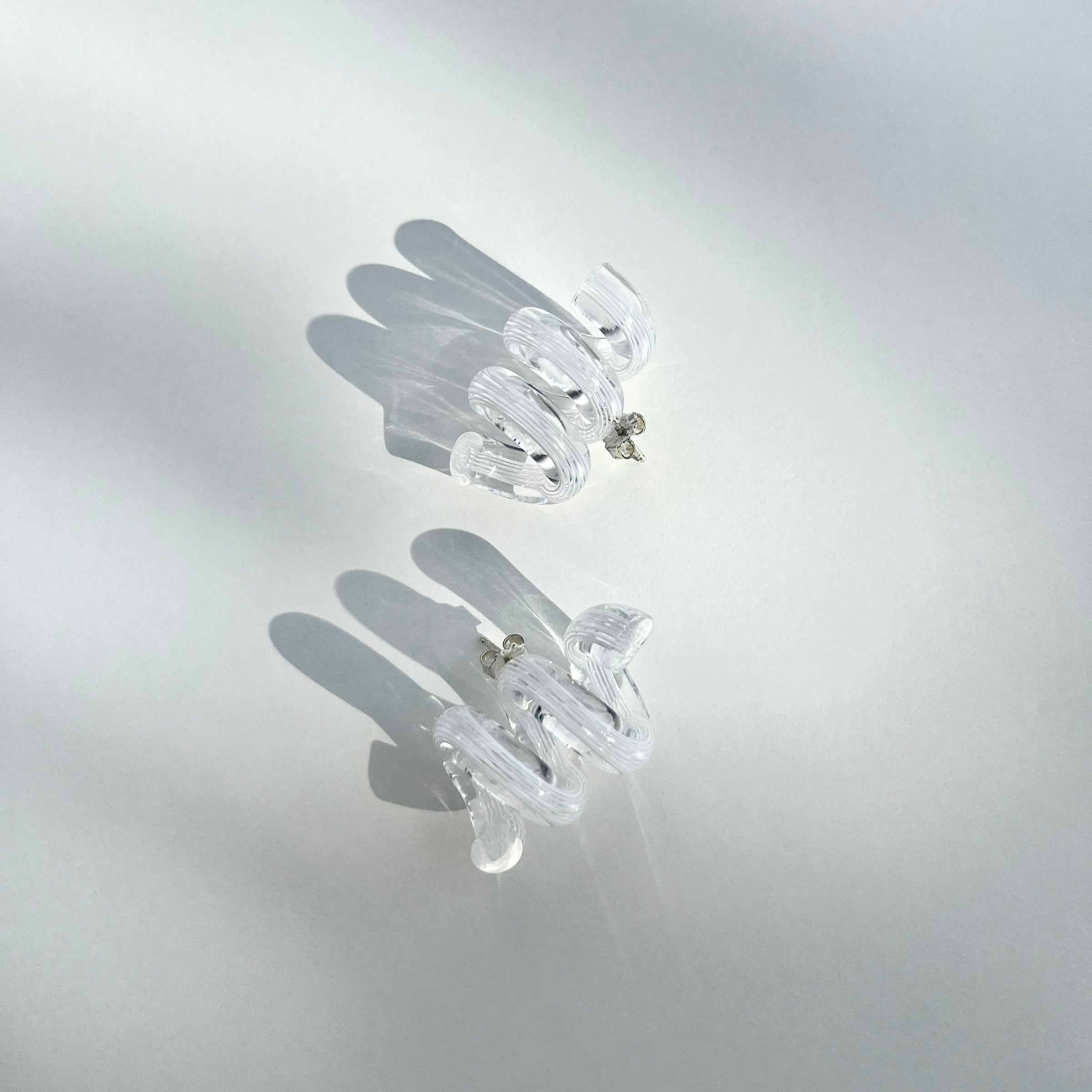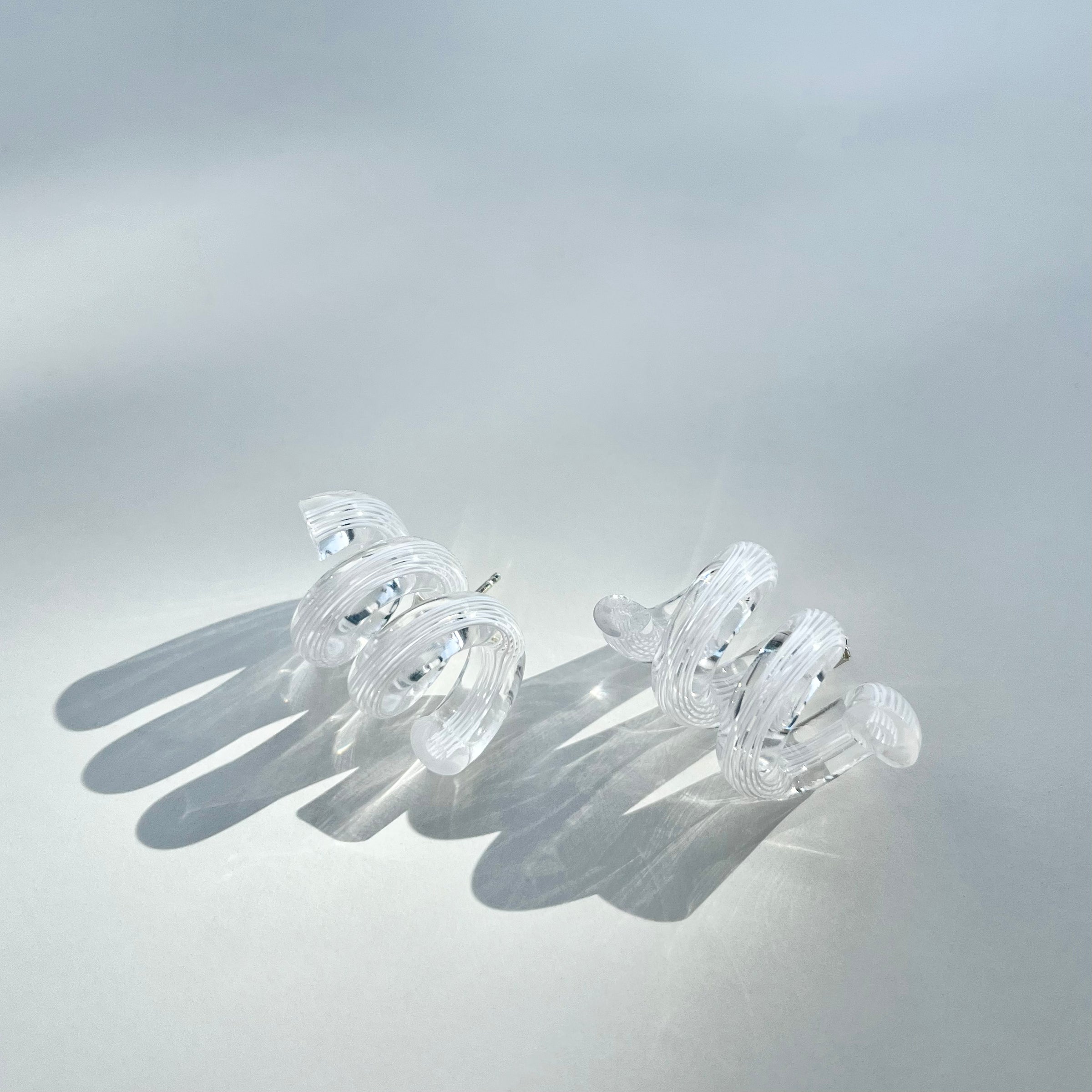 The coil earrings are inspired by Italian Murano glass but are made of light and durable acrylic with sterling silver findings.