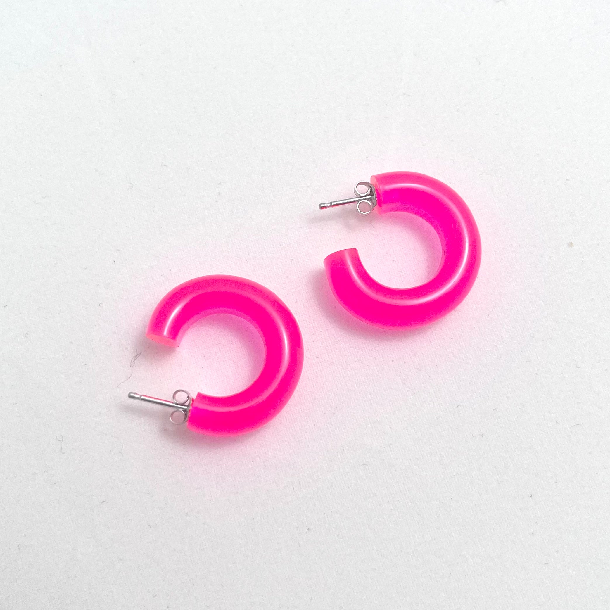 The Simple Hoops are made of light and durable acrylic with sterling silver findings.
